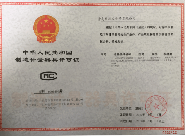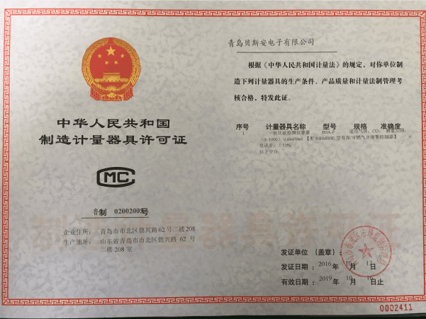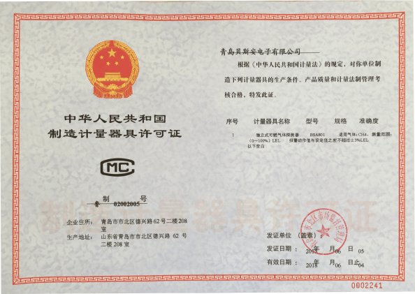 我公司是青島市具有國家質量技術監(jiān)督部門頒發(fā)的計量器具生產許可證的生產企業;獲得國家防爆電氣產品質量監(jiān)督檢驗中心頒發(fā)的防爆合格證;獲得國家公安部消防產品合格評定中心頒發(fā)的消防產品形式認可證書。